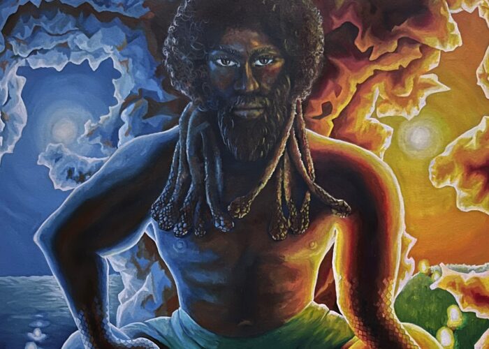 Gaps of Silence moves through the liminal spaces between reverence and forgetting, tracing the presence of the old gods of Oceania and the echoes left by colonisation's silencing. These works listen to what lingers in the hush between worship and erasure, where the divine waits to be remembered. Through gesture, colour, and form, art becomes both invocation and archive, a space where ancestral voices are remembered, not as myth, but as enduring presence. In this silence, memory transforms into ceremony; absence into knowing.